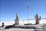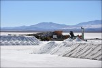 A Pumamarca saliamo a piedi sul mirador da dove si gode una splendida vista sulla minuscola cittadina ai piedi del Cerro 7 Colores. Gironzoliamo per il centro e constatiamo che anche questo è un paesino turistico dove tutte le casette sono in adobe e le viuzze non asfaltate. Ci rimettiamo in marcia sulla R52, diamo un passaggio ad un poliziotto autostoppista e percorriamo il bel passo Cuesta de Lipán, che con diversi tornanti raggiunge i 4220 m s.l.m. La discesa, più lineare, ci accompagna fino alla Salinas Grandes. Questa enorme distesa di sale copre una superfice di 212 km². Più tardi arriva il furgone di Maria (italiana), Ben (francese) e la loro figlioletta Gaia che da 11 anni abitano nella Guyana Francese. Sono molto simpatici e li invitiamo per un risotto allo zafferano. L’indomani salutiamo i nostri amici che vanno verso Pumamarca e noi continuiamo sulla scenografica R52. Affrontiamo il Paso Jama, che sale abbastanza dolcemente e, ad un’altitudine di 4170 m s.l.m., troviamo l’edificio doganale in cui si svolgono sia le pratiche argentine che quelle cilene. Il tutto si svolge velocemente (1h15) e la perquisizione del veicolo è abbastanza superficiale.
