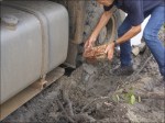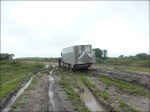 Per Raggiungere Francistown percorriamo una strada secondaria non asfaltata di una cinquantina di chilometri; anche se piove da oltre una settimana e le condizioni della strada poco buone, noi ci proviamo. In alcuni tratti il terreno ha assorbito l’acqua, in altri sembra d’essere in un lago, e altri ancora molto melmosi. La nostra fortuna ha però un limite, e rimaniamo bloccati nella melma. Il fango è durissimo e impieghiamo 1h15 per uscire. In parecchie altre fangaie invece, siamo riusciti a uscire con qualche manovra di retromarcia. Riguadagnata la strada asfaltata, proseguiamo spediti verso nord. Cerchiamo uno spiazzo per trascorrere la notte al bordo del lago artificiale Shashe bridge, ma la strada termina all’ingresso del sedime della centrale elettrica. Non possiamo entrare, allora ci allontaniamo di qualche centinaio di metri dall’abitato e ci accampiamo a bordo strada. All’indomani ci fa visita un gruppo di sei agenti della polizia municipale con tanto di manganello e manette. Ci chiedono per quale motivo siamo lì. Soddisfatti della nostra risposta, ci augurano buon viaggio con un grande sorriso!