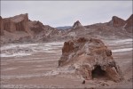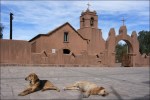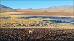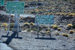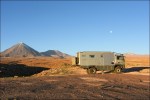 Arrivati in Cile spostiamo le lancette dell’orologio di un’ora e, con nostra sorpresa, continuiamo a salire fino a quota 4862 m s.l.m. Da qui la bella strada panoramica scende ripida e con poche curve, fino ad arrivare a San Pedro de Atacama (2400 m s.l.m.). Noi però ci fermiamo 22 km prima della cittadina, con l’imponente Volcán Licancabur alle nostre spalle. Questo magnifico vulcano di 5920 m d’altezza giace per ¾ su suolo cileno e per ¼ su suolo boliviano.