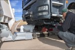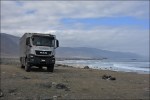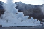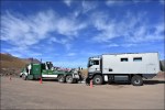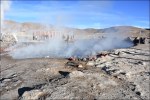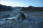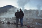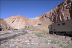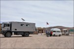 Ritorniamo a San Pedro a fare il pieno di carburante per raggiungere El Tatio, rinomato per i suoi geyser. Per caso incontriamo Peter che ci presenta velocemente all’equipaggio svizzero formato da Alex e Nadia che viaggiano con un VW bus camperizzato. Siccome anche loro trascorreranno la notte a El Tatio, rimandiamo le chiacchiere a più tardi. E via, si parte, davanti a noi una strada di sale, in parte sterrata che in 78 km ci porta da un’altura di 2400 m s.l.m. ai 4330 m. A 10 km dall’arrivo e all’imbrunire, il Nimbus si ferma: non v’è più aria nel circuito dei freni e il compressore non carica. Poiché questo guasto c’è già capitato, pensiamo che spegnendo e riaccendendo il motore i serbatoi si sarebbero riempiti di aria, ma niente di ciò succede. Dopo quasi un’ora di tentativi al freddo, il serbatoio dei freni è pieno d’aria e con una guida avara di frenate riusciamo appena a percorrere i 10 km che ci permettono di raggiungere il parcheggio dell’entrata ai Geyser El Tatio. Chiediamo ad Alex e Nadia un passaggio per l’indomani e lì invitiamo a colazione per le 5h00! Durante la notte la temperatura scende fino a -10°C. Alle 5h00 arrivano Alex e Nadia e ci dicono che il loro camper non si avvia! Decidiamo quindi di fare colazione tranquillamente e di pensare ai problemi dei veicoli solo dopo aver visitato i geyser che, anche se distanti solo un paio di chilometri, per questioni di sicurezza, bisogna raggiungerli in auto. Loro chiedono un passaggio a dei turisti mentre noi siamo accompagnati da un guardaparco. Con i suoi 4300 m s.l.m. El Tatio è il campo geotermico più alto del mondo. Ben 64 geyser e un centinaio di fumarole conferiscono a quest’enorme area un’immagine suggestiva. L’acqua espulsa con grande pressione da queste fenditure che portano alle viscere della terra, i vorticosi getti di vapore e il gorgoglio che sembra un numero infinito di pentole a vapore, conferiscono a questo luogo un’atmosfera indimenticabile. Il meglio di questo spettacolo surreale è all’alba, quando l’aria fredda fa condensare il vapore che esce dalle fumarole. Ci dicono che anni fa sono stati fatti degli studi nella zona per costruire una centrale termoelettrica ma fino ad ora nulla succede. È molto freddo e l’idea di fare il bagno nella piscina termale viene accantonata. Dopo qualche ora, con il sole che ci riscalda un pochino, camminiamo tutt’insieme al parcheggio e cerchiamo di risolvere i problemi ai veicoli. Con l’aiuto di Alex e di un martello riusciamo a sbloccarle la valvola e il serbatoio dei freni si riempie di aria. In seguito, attacchiamo i cavi alla batteria del loro furgone ma a causa dell’altura e del freddo, il motore VW bus non si avvia. Decidiamo di trainarlo ma dopo 50 m ci accorgiamo che il serbatoio d’aria si svuota; questa volta neppure con il martello riusciamo a sbloccare la valvola difettosa. Mentre Alex si fa trainare da un ranger e riesce ad avviare il motore, noi contattiamo il Garage MAN di Calama. Ci dicono che non hanno ancora l’officina MAN ma che il giorno dopo possono venire e trainarci fino ad Antofagasta. Salutiamo Alex e Nadia e aspettiamo l’indomani in compagnia di alcune volpi. Arriva il carro attrezzi e dopo un’oretta Juan ha finito d’attaccare il Nimbus al veicolo di soccorso … partiamo alle 9h15. Fino a Calama la strada è abbastanza ripida e tortuosa e dividiamo il sedile accanto a Juan. Approfittiamo del cambio autista nella loro sede di Calama e del fatto che da lì in poi la strada è piuttosto diritta per continuare il viaggio nella cabina del Nimbus dove, nonostante lo spauracchio di quello che potrebbe succedere in caso d’incidente, siamo più comodi. I 400 km di traino terminano nel garage MAN di Antofagasta alle 18.45. All’indomani, Gino, il meccanico che svolge il lavoro, è assistito telefonicamente dallo specialista di Santiago. Dicono che dev’essere un problema elettrico perché la valvola o va o non va. Dopo aver pulito i contatti però la valvola ancora non funziona. A questo punto, montano una valvola presa in prestito da un altro camion e il problema è risolto. Una nuova valvola quattro vie viene quindi ordinata a Santiago e la giornata si conclude con la speranza che il ricambio arrivi al più presto per via aerea. Alle 17.15 del giorno successivo finalmente arriva il pacchetto e Gino può terminare il lavoro.