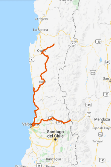 Santiago – Morillos – Embalse Cagoti – Zapallar – Viña del Mar – Panquehue – Portillo – Paso Libertator Frontiera Cile/Argentina