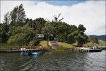 Attraverso una strada tortuosa ma panoramica raggiungiamo, all’imbrunire, la Laguna de la Cocha. All’ultimo chilometro però il traffico è bloccato, un bus e un camion sono rimasti impantanati nel parcheggio sterrato. Abbiamo offerto il nostro aiuto ma con un arganello a mano sono riusciti a liberare il bus. Per il camion invece ci penseranno l’indomani. Passiamo la notte nel paesino di El Puerto; i canali che lo attraversano e i ponti pedonali che permettono di passare da una sponda all’altra gli danno un tocco molto pittoresco. Le costruzioni sono molto particolari, fabbricate con un largo impiego del legname della zona e mantenendo una linea uniforme. Accettiamo la proposta di un giro in barca per raggiungere il Parque Nacional Santuario de Flora Isola Corota. Ad attenderci, un piccolo santuario e un sentiero di poco più di 500 m che attraversa l’isola ed è contornato da piante esotiche che, grazie al microclima, possono esprimere la loro bellezza. Al termine del sentiero un bel punto panoramico.