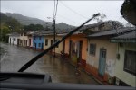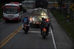 Seguiamo i suoi consigli, la strada si rivela molto lenta, tortuosa e con rami bassi. Oltretutto a Fredonia vi sono dei lavori in corso e degli autisti di bus ci consigliano d’imboccare una strada con un “divieto d’accesso” in quanto ritengono che il Nimbus non riuscirebbe a passare dalla deviazione segnalata. Naturalmente, nella stradicciola causiamo un caos incredibile con il traffico in senso inverso. La strada pur passando nella zona “cafetera”, non è interessante dal lato panoramico. Ad Amagà imbocchiamo la strada principale per Medellín che però è tutta un cantiere. Perdiamo molto tempo fermi. Arriviamo in periferia di Medellín, fortunatamente per noi, l’allerta smog ha imposto delle severe restrizioni di circolazione in tutta la città, e quindi riusciamo ad attraversarla da soli e abbastanza velocemente. Quando imbocchiamo la strada per Sta Elena tiriamo un sospiro… ma pochi chilometri dopo il traffico è bloccato per una manifestazione di quartiere; la protesta è per le continue interruzioni di erogazione dell’acqua. Ben un’ora e mezzo di attesa e così, con il buio, saliamo la collina che ci regala una bellissima vista sulla città illuminata. Ci fermiamo per trascorrere la notte in uno spiazzo davanti ad un cancello. Il giorno seguente arriviamo a Tres Puerta, un paesino sulla montagna che contorna Medellín dov’è ubicato il campeggio del Bosque.