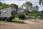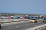Da Guatapé fino a Cartagena vi sono poco più di 700 chilometri e, visto che non abbiamo troppo tempo a disposizione e non vi sono particolari attrazioni lungo il cammino, decidiamo di farli “tutto d’un fiato”. Per riprendere la strada verso nord passiamo nuovamente alle porte di Medellín e guidiamo fino all’imbrunire. Trascorriamo la notte in un’area di parcheggio per camion a Santa Rosa de Osas, conosciuta per i prodotti caseari. Il giorno seguente incominciamo la discesa (tutta la strada percorsa in Colombia fino ad ora si trovava ad un’altezza tra i 1000 e i 2900 m.s.l.m.). Raggiunto il fondo valle, a 60 m s.l.m., la strada scorre lungo il fiume al cui lato si vedono numerosi “lavadora de camion”. Più avanti vediamo un cartello stradale con l’indicazione di Cartagena, quindi lasciamo la 25 e imbocchiamo la 23 in direzione Monteria. Questo tratto di strada è appena stato rifatto e vi è pochissimo traffico. Dopo 35 chilometri un altro cartello ci indica la svolta su una strada nuovissima, dopo altri trenta chilometri arriviamo nei pressi di Cerete e non vi sono più indicazioni stradali. Chiediamo informazioni ad un camionista che ci dice che la strada per Cartagena non è ancora terminata e che i cartelli con le indicazioni andrebbero coperti; sono molti gli autisti che li seguono … noi compresi! Un giro dell’oca poco interessante….