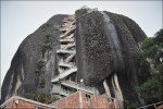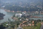 Lasciamo il campeggio e ci dirigiamo verso est. Ci fermiamo alla Piedra del Peñol, una gigantesca collina monolitica di granito alta ben 200 metri con una scala in mattoni di 675 gradini inserita nella fenditura. Dalla cima si gode di un’ottima vista sul lago artificiale formato dalla diga Guatapé, oggi però c’è un po’ di foschia e il livello dell’acqua è molto basso; infatti, l’altezza del lago è stata abbassata per permettere dei lavori di manutenzione alle prese d’acqua della centrale idroelettrica. Il livello così basso guasta un po’ il paesaggio.
