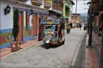 Scendiamo la tortuosa strada sino a raggiungere la principale che comunque è tutta a curve. Decidiamo di non andare a Cali e raggiungiamo, nella zona “Cafetera” il villaggio di Salento che con le sue stradine strette, rende particolarmente difficili le svolte agli incroci ai mezzi pesanti. Con un po’ d’ansia e qualche manovra ci infiliamo nel Camping “Guadales Floresta”; il posto è spartano ma in mezzo al verde e ai cavalli. Appena smette la pioggia ci incamminiamo verso il centro che è molto bello e caratteristico ma molto turistico. Sul “mirador” del paese si gode di una bella vista sulla Valle de Cocora e sul villaggio. Il giorno dopo partiamo per un’escursione di tre ore a cavallo, il primo tratto è su una stradina di collegamento dove transitano le jeep Willis con la funzione di taxi collettivo pubblico. Lasciata la stradina il sentiero percorre un bosco con una vegetazione rigogliosa e lussureggiante. Arrivati al fondo valle attraversiamo il fiume parecchie volte e percorriamo anche tratti sul suo letto; fortunatamente non c’è troppa acqua ma abbastanza per bagnarci i piedi. È stato bello, ne valeva la pena ma per noi tre ore a cavallo senza essere abituati sono più che sufficienti.