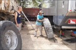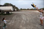 A fine pomeriggio arriviamo nelle vicinanze di Cartagena ma non vogliamo entrare in città a quest’ora sia a causa del traffico sia per non farci cogliere dal buio. A Mata Puerco scorgiamo un ampio spiazzo con dei camion, entriamo e chiediamo se possiamo rimanere per la notte. Molto gentilmente, Andrés, il responsabile della ditta di trasporti, ci dice che non ci sono problemi. Dopo qualche chiacchiera con lui vediamo Laura e John che stanno facendo fare degli esercizi al loro pappagallo perché impari a volare. Rebecca ha circa due mesi e inizia appena a volare ma ancora non mangia da sola. Come l’anno scorso, il caso vuole che anche quest’anno Renato riceve come regalo di compleanno una “rotazione degli pneumatici” e quindi approfittiamo dell’officina della ditta di trasporto. Andrés ci dà indicazioni su come raggiungere Cartagena facendo qualche chilometro in più (38!) ma evitando il traffico e le strade strette della città.