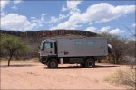 Eccoci di nuovo in Namibia. Avevamo lasciato il nostro Nimbus in un capannone a una quarantina di chilometri dalla capitale e con piacere costatiamo che, anche se un po’ impolverato, il veicolo è in buone condizioni e si accende al primo colpo.