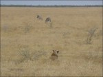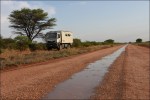 Durante la notte ecco che arriva la pioggia ad annunciare l’arrivo dell’omonima stagione. Continuiamo verso ovest, ma la pioggia ha formato tantissime pozze e l’avvistamento degli animali è più difficile poiché non sono obbligati ad andare ad abbeverarsi nelle grandi pozze. Il paesaggio è comunque stupendo e riusciamo a vedere una leonessa. Con un po’ di fatica, e solo a condizione di accettare una piazzuola allagata, riusciamo a fermarci all’Okaukuejo Rest Camp.