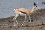 Una delle zone migliori al mondo per l’osservazione della fauna, una vastissima piana salina desertica che per qualche giorno all’anno viene trasformata dalle piogge in una laguna dal fondale basso, brulicante di fenicotteri e pellicani. Contrastano con quest’ambiente la boscaglia e le praterie circostanti che costituiscono l’habitat della variegata fauna della riserva. Siamo entrati dalla porta d’accesso di Namutoni Rest Camp, contraddistinto da una bianca fortezza tedesca e abbiamo iniziato il nostro safari andando a collocarci davanti alla pozza più vicina: è stato bellissimo vedere la sfilata di così tanti animali, tra cui anche uno sciacallo. Abbiamo poi proseguito verso ovest fino all’Halali Rest Camp.