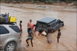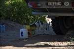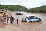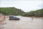 Dopo aver fatto una tappa di un paio di giorni al Kunene Lodge, ci rimettiamo in strada per raggiungere le altre cascate; non senza fermarci al Swartbooi’s Drift per vedere il monumento che ricorda i trekker del Dorsland che passarono di qui nel viaggio verso quelle che sarebbero state le loro future fattorie in Angola. Sulla strada ci supera un gruppo di fuoristradisti sudafricani. Giunti al fiume, li vediamo intenti a ispezionare il fondale per il guado. Le immagini rendono più delle parole: il fondale era melmoso per cui anche noi rinunciamo a guadare il fiume.