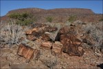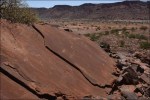 Man mano che ci avviciniamo ai piedi del Brandberg (montagna bruciata), la colonnina di mercurio sale fino a 41 gradi e un bagno nella piscina del campeggio ci rivitalizza. Ne approfittiamo per fare il bucato e un po’ di pulizia e poi si parte. Pochi chilometri e siamo all’accesso della vallata del Brandberg che porta alla pittura rupestre conosciuta come “White Lady”. In questi giorni però l’accesso al sentiero di km 2.5 che porta al sito è chiuso perché nella zona si aggirano diversi leoni. In effetti, abbiamo poi appreso dal notiziario in lingua tedesca che, verso la metà di dicembre, un turista americano è sparito: pensano siano stati i leoni a tendergli un agguato.