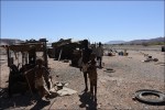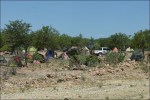Sulla strada vediamo qualche capanna degli Himba, poco dopo un assembramento di tende; ci diranno in seguito che parte della popolazione Himba della regione si è radunata costituendo questa tendopoli per il funerale di un anziano. Le persone rimangono per una settimana circa, sino al giorno della sepoltura.