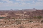Il Messum Crater è formato da due cerchi concentrici di colline originate dai detriti di un vulcano collassato milioni d’anni fa nelle Goboboseb Mountains. Raggiungiamo il centro del cratere che misura più di 20 km di diametro e crea un vasto microcosmo ideale per le welwitschie e i licheni. Le welwitschie hanno radici molto fini e assorbono l’umidità portata dalla nebbia che si condensa durante la notte sulle loro larghe foglie. Queste piante possono sopravvivere oltre duemila anni.