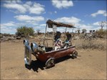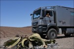 A Keetmanshoop diamo una pulitina al nostro Nimbus e facciamo rifornimento di viveri. Per la terza volta incrociamo sulla nostra rotta in Africa, Gaby e Peter (pegasus-unterwegs.ch). Ci diamo appuntamento al Garas Rest Camp, un campeggio tutto particolare, il cui proprietario ha una vena artistica e la passione di costruire delle opere stravaganti con del materiale riciclato. Un’altra particolarità di quest’area sono le bellissime piante chiamate kokerboom (Quiver tree) con il loro tronco di un giallo caldo e i rami che sembrano braccia protese al cielo.
