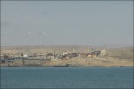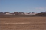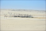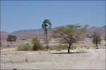 Dopo aver ammirato i cavalli, struzzi e orici, percorriamo verso ovest i cento chilometri nel deserto del Namib meridionale che è molto diverso dalle pianure di ghiaia del nord. Il paesaggio è surreale: una striscia nera e diritta d’asfalto, una parallela con i binari della ferrovia e le basse catene montuose dell’Awasib e dell’Uri-Hauchab, le cui sagome color pastello spuntano dalle pianure tra una nebbiolina di sabbia e polvere portate dal vento. A dieci chilometri da Lüderitz, il vento si fa più forte e, infatti, degli operai stanno lavorando per ripulire la strada dai mucchi di sabbia.