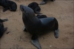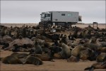 Raggiungiamo Cape Cross, dove visitiamo la bellissima colonia di otarie che conta ca. 100’000 esemplari. Siamo fortunati poiché i cuccioli nascono verso la fine di novembre e l’inizio di dicembre e quindi possiamo osservare gli asili in cui le madri lasciano i loro cuccioli mentre vanno in cerca di cibo. Quando queste fanno ritorno alla colonia, riconoscono la rispettiva prole grazie a una combinazione tra la percezione olfattiva e il particolare richiamo. La visita è molto emozionante, ma il puzzo è molto forte e sgradevole.
