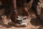 Quando nel 1920 decisero di tornare nella loro terra, il Kaokoland in Namibia, si ritrovarono a costituire un “unicum” culturale di eccezionale importanza. Ricostruirono i loro villaggi chiamati “Kraal”, circondati da recinti di ramaglie spinose e da capanne a cupola fatte di rami di acacia intrecciati e intonacati con un impasto di fango e sterco bovino. E con lo stesso sterco ricoprirono il pavimento, stendendolo e battendolo fino a rendere il suolo soffice e uniforme come un grande tappeto. In effetti, un po’ nocivo poiché causa una malattia nota con il nome di “tosse da sterco di vacca”. In mezzo al Kraal, il recinto per gli animali.