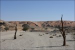 Prima di lasciare la cittadina chiediamo il permesso per entrare nel Gobabeb, situato sempre nel Nabib Naukluft Park. Fino al centro di ricerca la pista è in buone condizioni ma in seguito sembra d’essere su una lamiera ondulata. Gli scenari alleviano in parte le sofferenze.