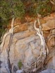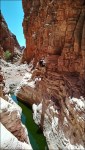 Raggiungiamo il Naukluft Mountain NP e partiamo per il percorso ad anello di 10 km chiamato Olive Trail per la presenza di numerosi ulivi selvatici che crescono ai bordi del sentiero. Dopo una ripida salita sull’altopiano si scende lungo una stretta valle fluviale che diventa sempre più profonda e più ripida. A un certo punto, con l’ausilio delle catene fissate alla roccia, si deve attraversare la parete di un canyon. Sul letto asciutto del fiume si trovano dei sassi striati che sembrano quadri dipinti da un mastro pittore. Dopo aver terminato il percorso in oltre cinque ore, ci tuffiamo nelle pozze per un po’ di refrigerio.