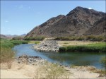 L’Orange River, così battezzato da Bartolomeo Diaz, nasce in Lesotho; è uno dei pochi fiumi dove tutto l’anno scorre l’acqua e traccia il confine tra la Namibia e il Sudafrica prima di gettarsi nell’Atlantico. La colonnina di mercurio segna 44 gradi, è la giornata più calda che abbiamo vissuto nel nostro viaggio. Le montagne che contornano il corso del fiume sono di rara bellezza.