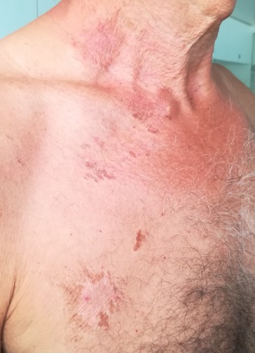 La pelle continua a cuocersi e non migliora in modo soddisfacente. Alla mattina prendo ancora un antistaminico che alla sera sostituisco con l’antibiotico Doxycycline che già avevo usato per la puntura del ragno “Violin”.