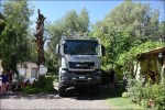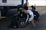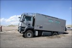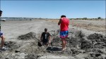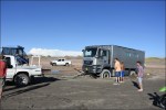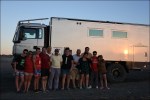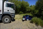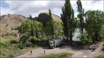 Lasciamo la regione di Mendoza e c’immettiamo nella mitica Ruta 40 puntando verso Sud. La Ruta 40 è una strada nazionale che attraversa da sud a nord l’Argentina. Inizia a Cabo Virgenes, scorre parallela alla Cordigliera delle Ande per ben 5’194 km e termina a nord, al confine con la Bolivia. La Cordigliera delle Ande la vediamo in lontananza e la strada è poco panoramica. Raggiungiamo San Rafael passando tra vigneti e uliveti. Approfittiamo di un lavaggio self-service per pulire il nostro Nimbus. Ci dirigiamo a El Nihuil che si affaccia sull’omonimo bacino idroelettrico e ci fermiamo al bordo delle dune a goderci il panorama e ad ammirare l’avifauna che abbonda di cigni con il collo nero. Si alza un vento fortissimo e decidiamo di rimetterci in viaggio. Giriamo il Nimbus ma le ruote posteriori sprofondano nel terreno! Infatti, chi l’avrebbe mai detto che sotto la crosta di sabbia ci fosse un terreno argilloso? Subito vengono in soccorso i bagnanti ma ben presto ci si rende conto che senza l’aiuto di un caterpillar non si riesce a uscire. Gloria va con Esteban, una persona del posto, alla ricerca di un veicolo industriale ma purtroppo il proprietario è andato via per le feste. Chiedono ai pompieri, ma loro non hanno un veicolo che potrebbe toglierci dagli impicci. Fortunatamente il piccolo comune ha un trattore che, con l’aiuto di due pick-up riescono a togliere il Nimbus dal buco … per insabbiarsi nuovamente 5 metri dopo. La spessa crosta di sabbia, che secondo la gente del posto è durissima, non sopporta le 9 t dell’asse posteriore del Nimbus! Con le pale togliamo la sabbia da sotto il telaio e scarichiamo anche la moto. Un altro tentativo va a buon fine ma dopo pochi metri ecco che il Nimbus mette ancora il sedere a terra. Finalmente, dopo quattro ore e mezzo, con 3 Pick-up e il trattore, riusciamo a uscire dalla zona critica. Esteban propone di andare a festeggiare tutti assieme a casa sua dove la moglie Analine ci prepara delle deliziose pizze.