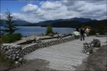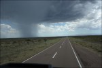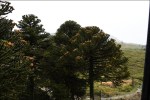 Ci mettiamo in viaggio e apprezziamo il paesaggio che comincia a diventare interessante. Dopo un’ottantina di chilometri inizia un tratto sterrato di 100 km che passa anche attraverso una zona molto bella, caratterizzata da grandi formazioni laviche. La cima innevata del Vulcano El Tromen (3984 m) fa da sfondo e ci dà il benvenuto in Patagonia. A Chos Malal un monumento indica che il villaggio si trova esattamente a metà della Ruta 40. A Las Lajas, una scultura ci ricorda che siamo nella regione dei condor. Lasciamo la Ruta 40 per dirigerci verso Ovest. Siamo nella regione dei Mapuche (o Mapuce), termine che significa “popolo della terra”. Nativi della regione, hanno resistito con successo ai molti tentativi dell’Impero Inca di assoggettarli e combatterono anche contro i conquistadores riuscendo a resistere per tre secoli ai tentativi di colonizzazione. Qui la polizia ha anche il compito di scortare le greggi che percorrono le strade. Pochi chilometri prima del confine con il Cile imbocchiamo la strada sterrata per il lago Aluminé, contornata da alberi di Araucaria . La meteo fa le bizze, la pioggia si mescola con i fiocchi di neve. Il Nimbus ha un problema: la valvola che regola la pressione dell’aria del sistema dei freni non riaggancia il compressore, la pressione si abbassa e blocca i freni. Per ripristinare la pressione nel circuito, si deve continuamente spegnere e riaccendere il motore. Arriviamo a Villa Pehuenia (lago Aluminé) e ci sistemiamo nei parcheggi dell’imbarcadero.
