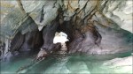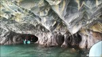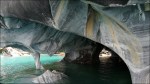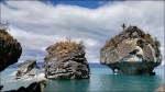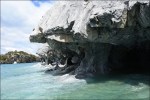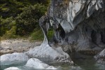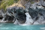 Costeggiamo verso nord quest’ultimo e prendiamo il bivio che porta a Puerto Marmol (Bahia Manza). Il chilometro di strada che scende alla baia è molto ripido e i posti per incrociare sono pochi. Non c’è molto traffico per cui non abbiamo problemi. Sulla stradina però incontriamo una coppia che, per permettere l’incrocio a un’altra auto, è scesa nel solco dell’acqua. Il pronto intervento del Nimbus è stato ben apprezzato. Approfittiamo di un’occhiata di sole per fare un giro in barca alla Capilla de Mármol, il tour è durato un’oretta, e purtroppo il sole non sempre era presente. Le grotte di marmo e le formazioni geologiche simili a sculture che emergono dal Lago General Carrera sono di rara bellezza. Le diverse stratificazioni di marmo con il lavoro d’erosione dell’acqua e del vento hanno creato un gioco di colori degno di un maestro pittore.