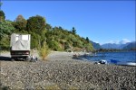 Ritorniamo sui nostri passi verso Puerto Varas per costeggiare il lago e dirigerci verso Ensenada, dove entriamo nel territorio del Parque Nacional Vincente Pérez Rosales, da cui si ha una bella vista sul vulcano Osorno. La strada termina alla ventosa Petrohué, che sorge sull’omonimo lago. Nella sosta per trascorrere la notte conosciamo una simpatica famiglia francese che ci dice che questa mattina la nave Grande America della Grimaldi (quella che ha trasportato il Nimbus a Montevideo) è affondata. Loro sono in contatto con due famiglie che hanno perso il camper. La notizia ci ha toccato parecchio, possiamo immaginare quale sia lo stato d’animo di chi ha visto affondare il proprio sogno.