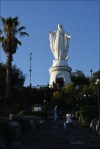 Con la nostra moto percorriamo le stradine del Cerro San Cristobal: con i suoi 722 ettari questo è lo spazio verde più grande di Santiago. Al suo interno c’è una funicolare, una funivia, un giardino zoologico, due piscine e la bianchissima statua alta 14 m della Virgen de la Inmaculada Concepción.