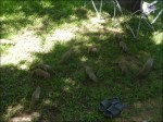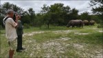 Con una guida andiamo a vedere i rinoceronti che in quel momento si trovavano all’esterno del Parco in quanto non recintato. Dopo una buona mezz’oretta di cammino vediamo delle zebre, degli gnu e poco dopo, seguendo le tracce, troviamo un gruppo di 4 rinoceronti. È una grande emozione essere sul terreno con loro a pochi metri di distanza. La guida ci dice che il rinoceronte bianco è molto mansueto a differenza di quello nero che in una situazione simile ci attaccherebbe. I rinoceronti bianchi pesano in media un paio di tonnellate, mangiano 80 kg di erba al giorno e raggiungono i 60 km/h. Ci vedono molto male e, al primo movimento brusco, s’impauriscono; la guida li tranquillizza fischiettando molto dolcemente. Per evitare il bracconaggio sono piantonati 24 ore al giorno e le due corna, per togliere l’appetito ai bracconieri, sono tagliate ogni tre anni, ovvero dopo una crescita di una dozzina di centimetri. Vederli così da vicino è stata un’esperienza indimenticabile! Nel parco ci sono delle conformazioni rocciose (Balancing Rocks) che sembrano sfidare le leggi della fisica, sono molto belle, anche se purtroppo oggi non c’è una bella luce.