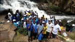 Arrivati al Nyanga National Park siamo presi d’assalto da una scolaresca e i ragazzi fanno a gara per scattare le foto insieme a noi. Siccome il viaggio è stato organizzato sul tema della geografia, spieghiamo da dove venivamo e che giro abbiamo fatto. Decidiamo di aggregarci al gruppo e andare a piedi a visitare la Nyangombe Falls e questo ci permette di fare una bella chiacchierata con i docenti. Con il Nimbus proseguiamo verso nord e raggiungiamo il punto panoramico World’s View. Da qui parte un sentiero impervio che in una ventina di minuti porta sul promontorio da dove si gode di una vista a 360°. Ritorniamo quindi sulle nostre tracce e prendiamo la pista in pessime condizioni (km 22 in 2h15) che ci porta alla cascata Mutarazi Falls. Visto che il sole sta già tramontando il ranger ci lascia visitare la cascata solo a condizione che il ragazzo del posto ci accompagni. Naturalmente accettiamo e così ci troviamo a percorrere a passo di corsa un sentiero in discesa di 600 m. Questa cascata è famosa poiché l’acqua fa un salto di m 700 (la seconda più alta d’Africa). Il punto d’osservazione non è dei migliori, per cui non ci entusiasma più di quel tanto. Quando ci rimettiamo alla guida è ormai notte fonda e la strada orribile.